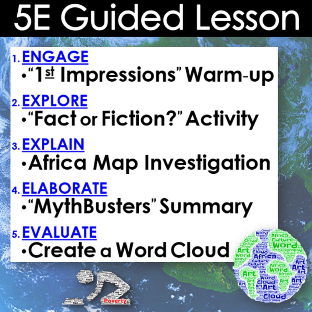 This lesson on African geography explores maps and addresses common misconceptions about the continent. The activities are engaging for students, and the guided 5-E format is easy for you to use! Everything you need is included!
