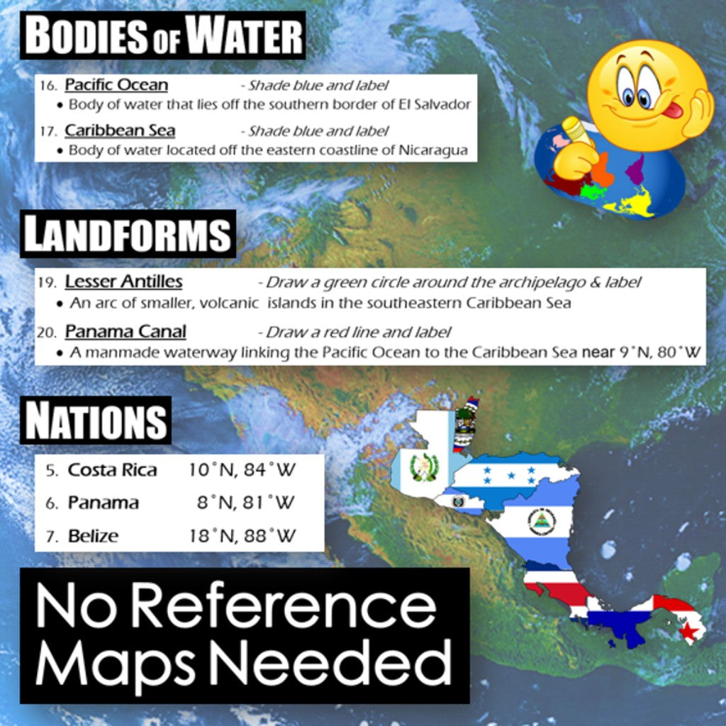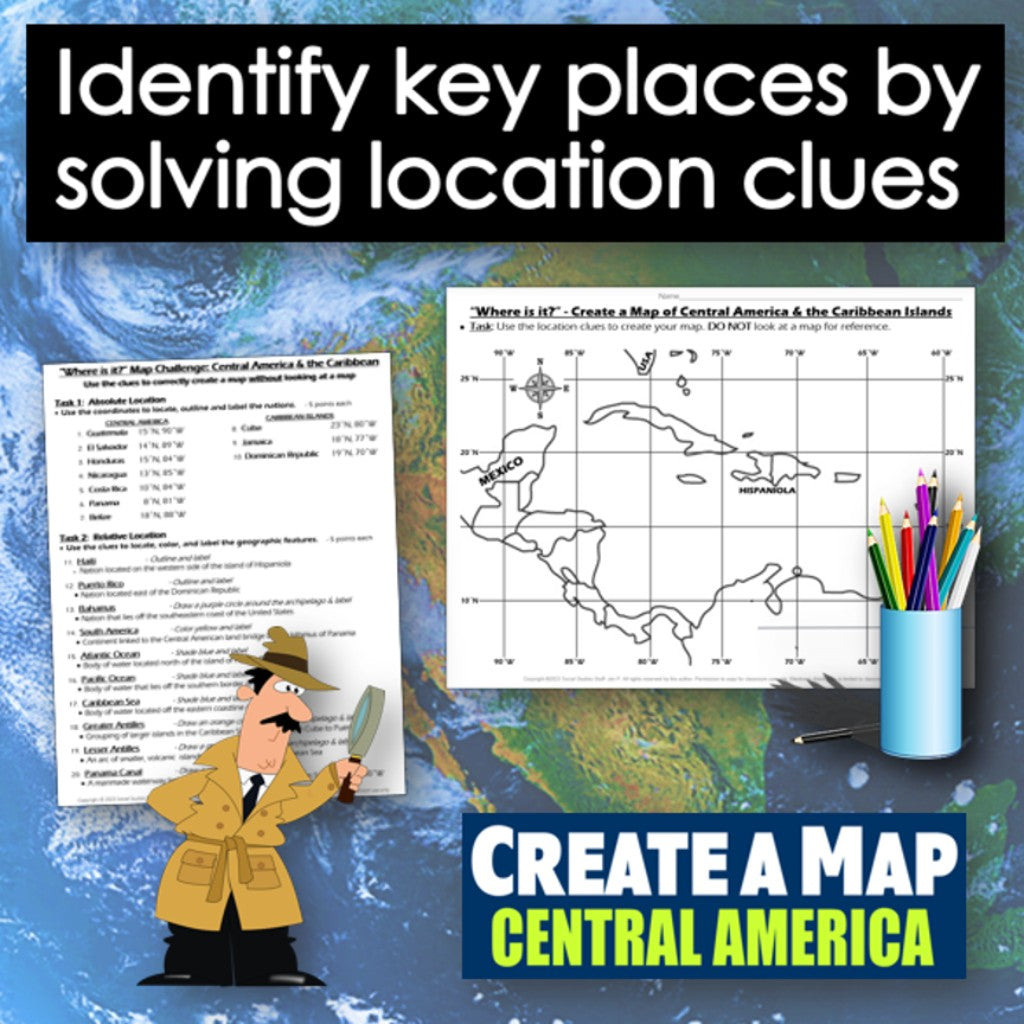 Central America Create a Map Worksheet - Where is it? Geography & Location Clues