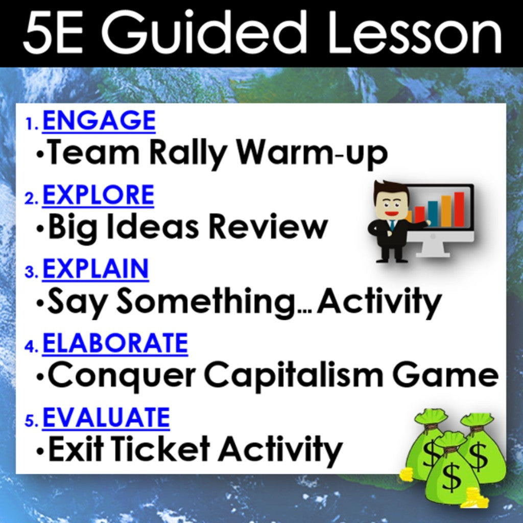 This lesson explores free market economics and examines capitalism in the real world. The activities are engaging for students, and the guided 5-E format is easy for you to use! Everything you need is included!
