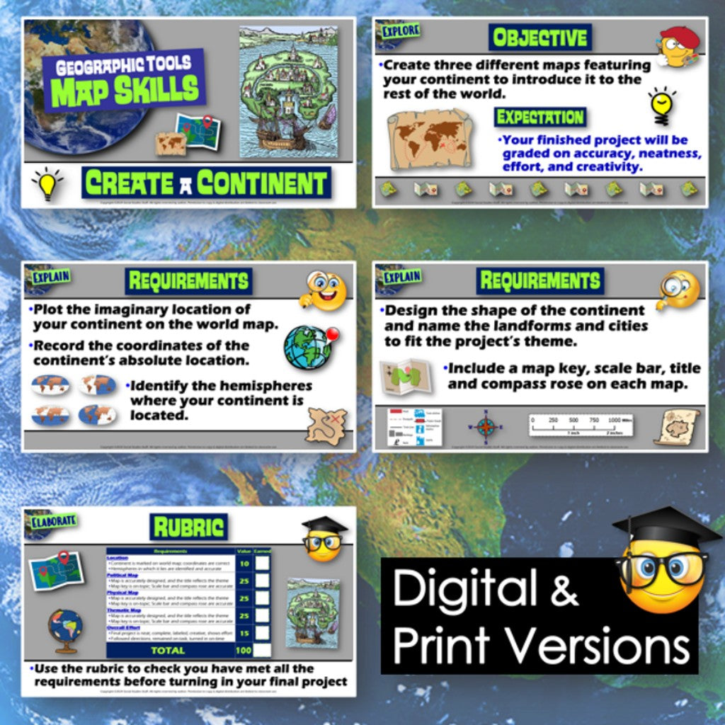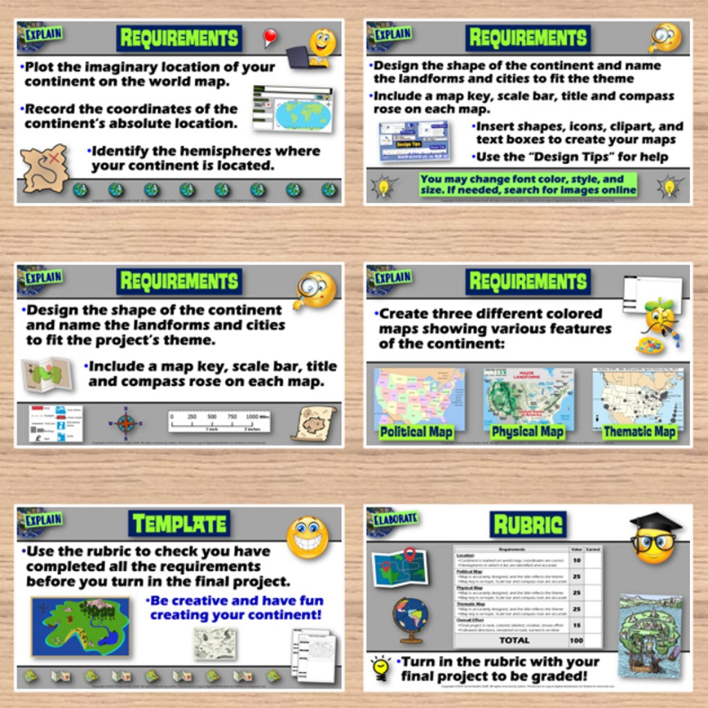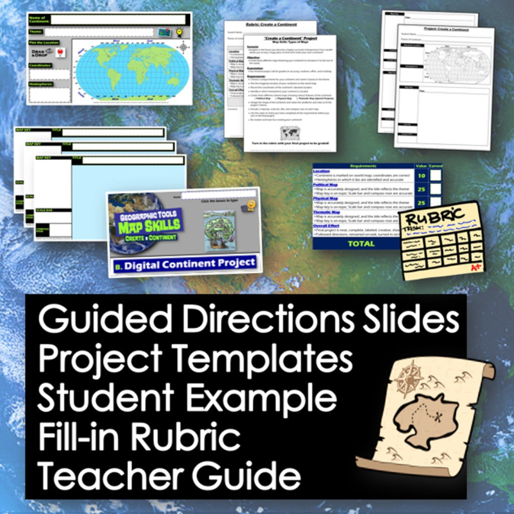 Challenge your class to choose a unique theme and create a continent of their own. They will design physical, political, and thematic maps to showcase their continents. The project is engaging for students, and the guided format is easy for you to use! A fill-in rubric sets clear expectations and makes grading easy! Everything you need is included!