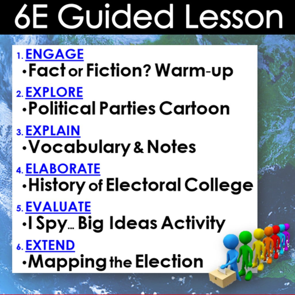 This lesson explores Election Day in the United States and explains how the Electoral College Map works. The activities are engaging for students, and the guided 6-E format is easy for you to use! Everything you need is included!