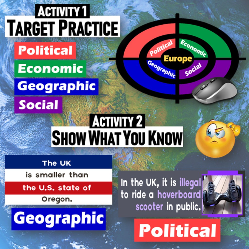 This fun lesson introduces the European continent by exploring its PEGS Factors: Political, Economic, Geographic, and Social. Challenge your students to examine interesting facts about Europe, then classify each by the PEGS factor it best represents. The activities are engaging for students, and the guided format is easy for you to use! Everything you need is included!