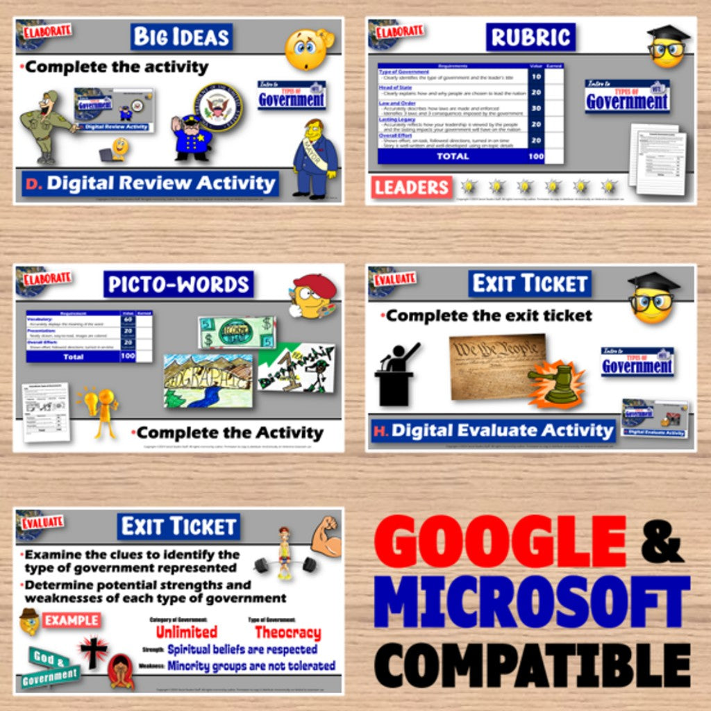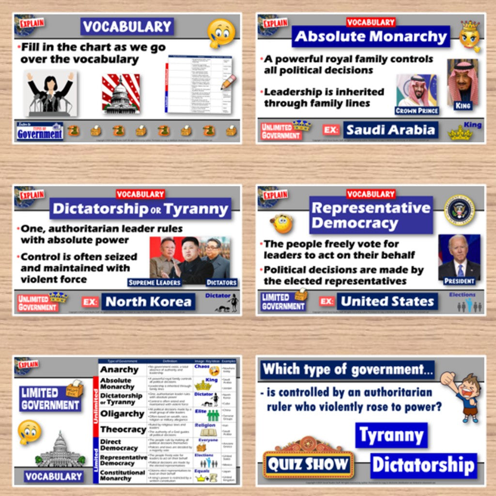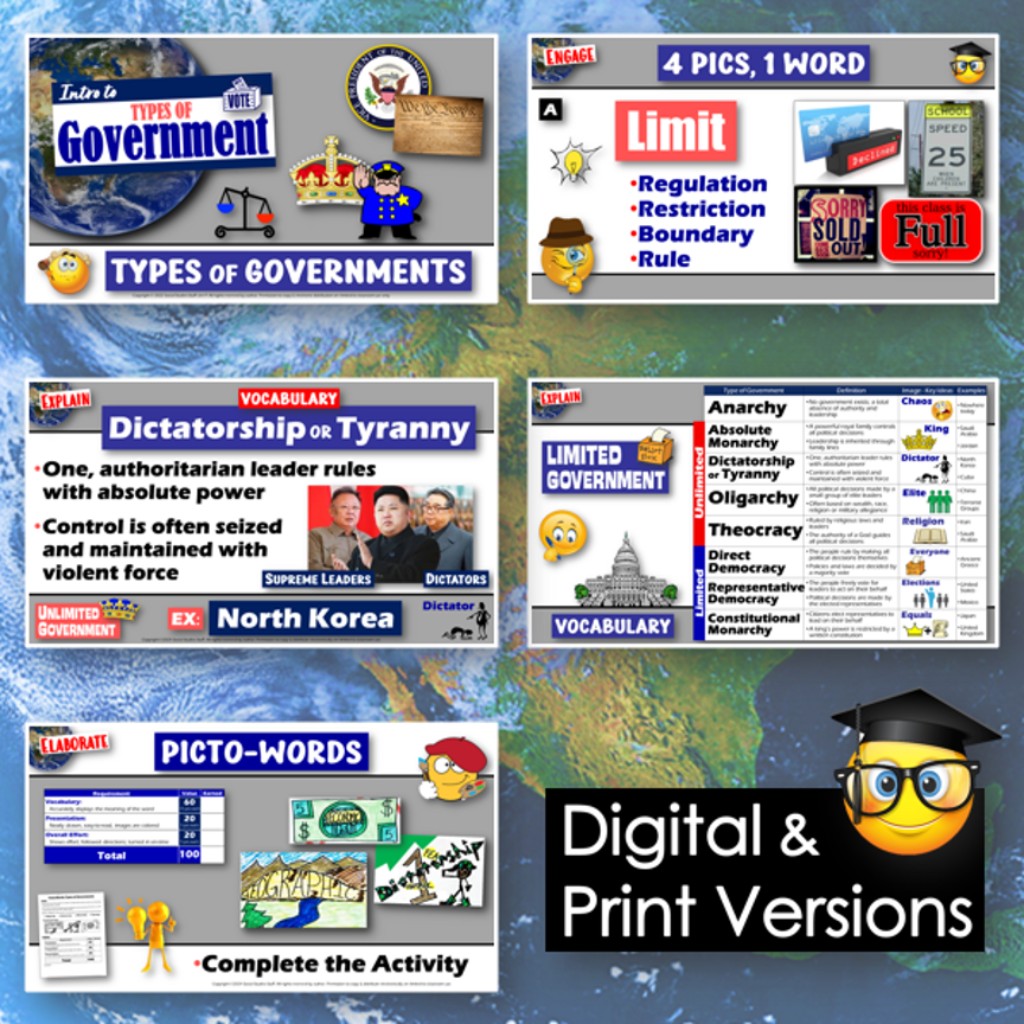 Examine Types of Government Intro Lesson & Practice Activities - Print & Digital