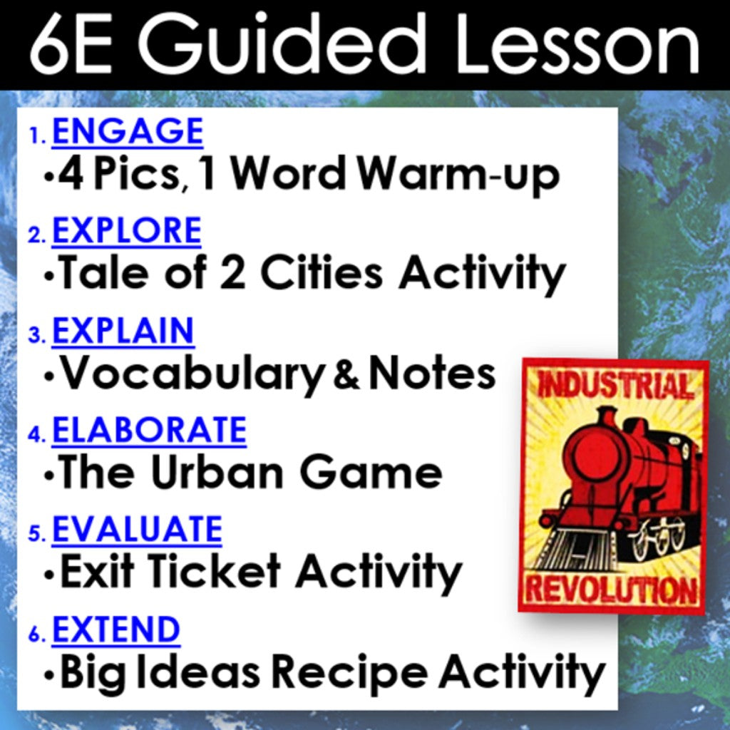 This fun lesson allows students to experience the changes to daily life during the Industrial Revolution and explore the effects of rapid urbanization on the world. The activities are engaging for students, and the guided 6-E format is easy for you to use! Everything you need is included!