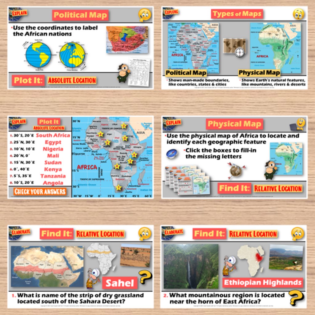 Africa Geography, Landforms, Places Lesson and Map Activities - Print & Digital