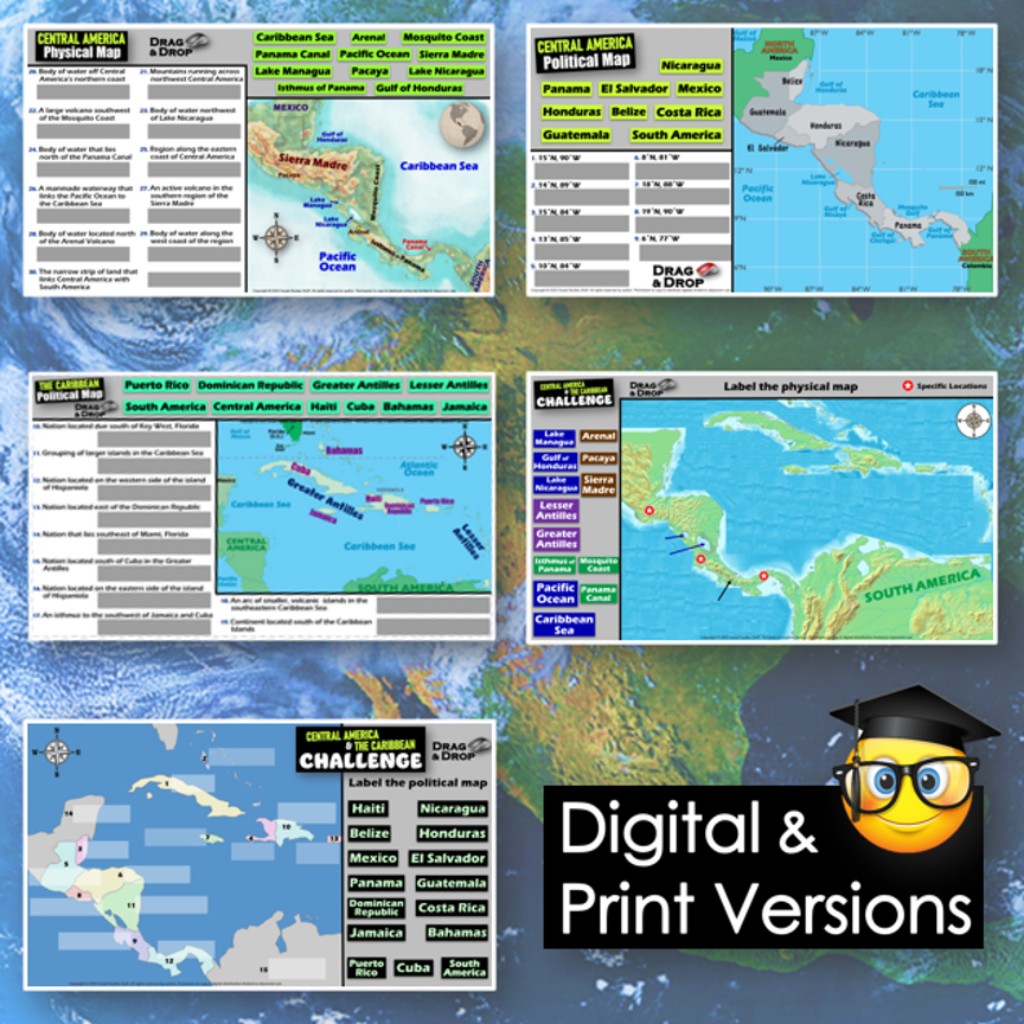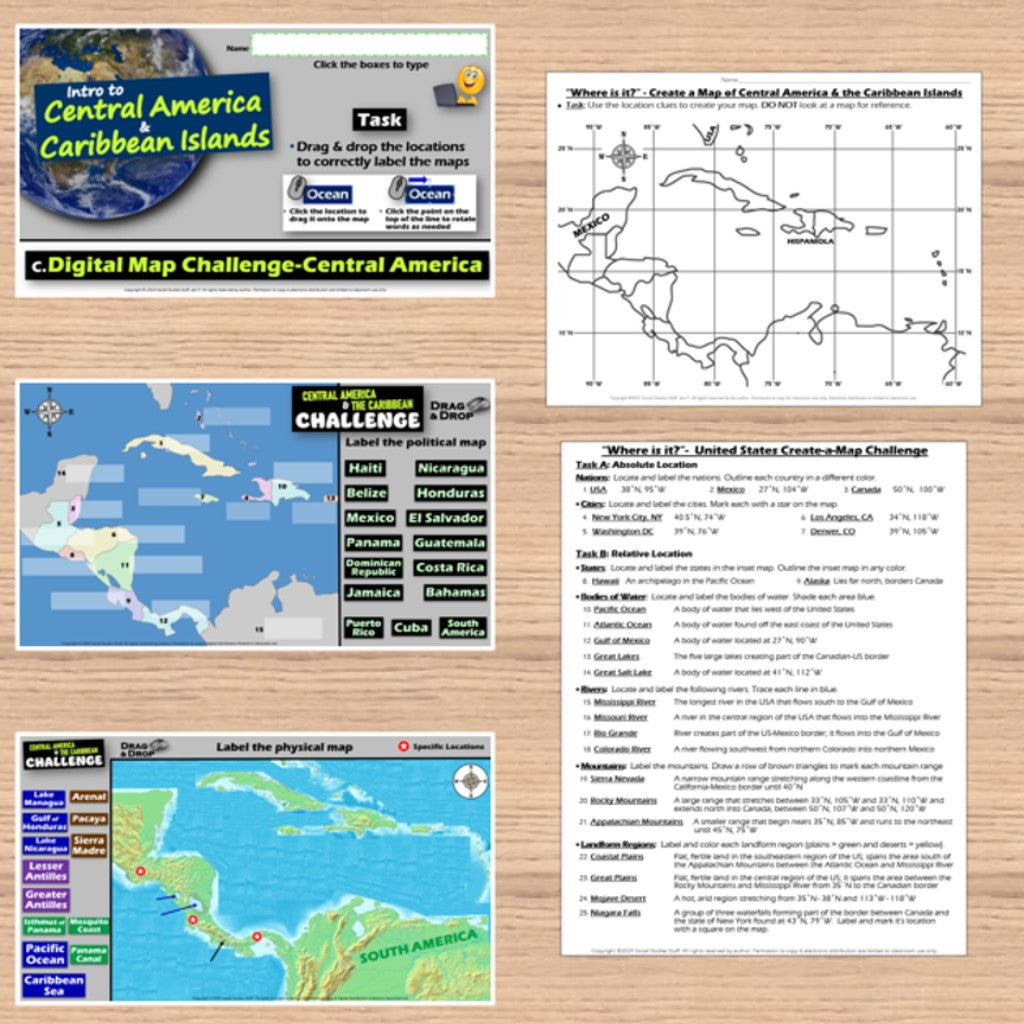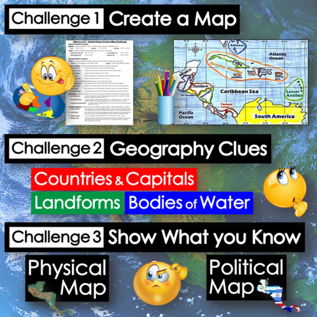 Map Challenge Central America & Caribbean Geography Activities - Print & Digital