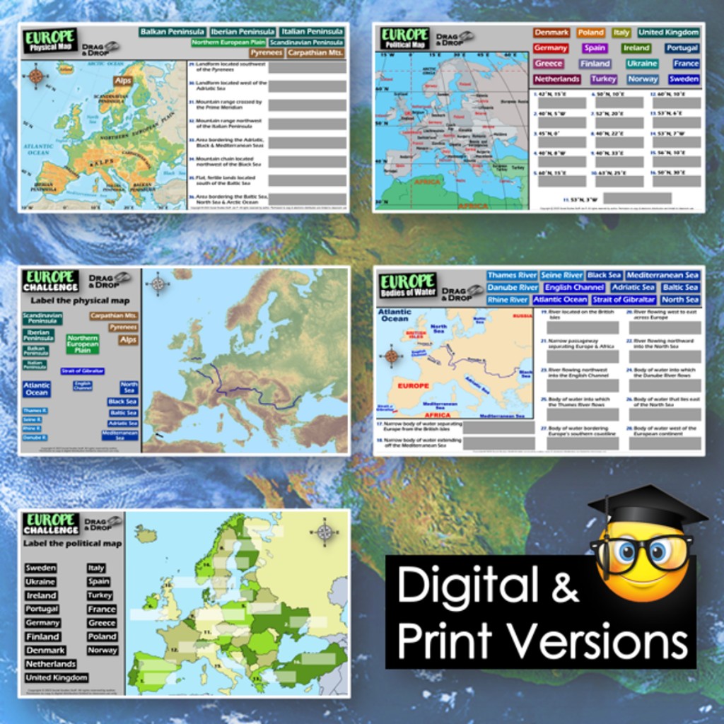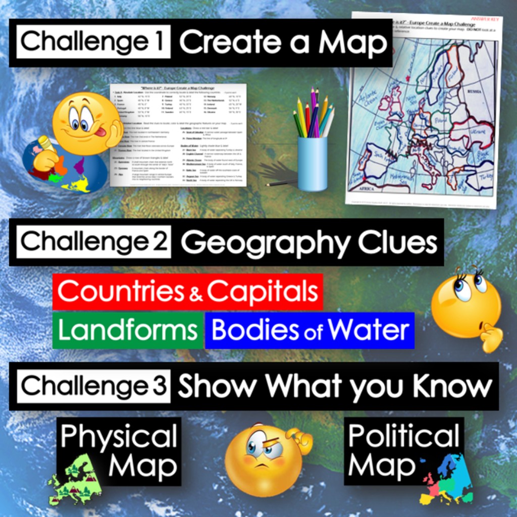 Challenge students to solve clues about Europe’s geography to label and create maps of the continent. The easy-to-follow instructions make these geography activities a fun way to integrate mapping into your curriculum. Say goodbye to bored students simply copying from textbooks to label maps! Everything you need is included!