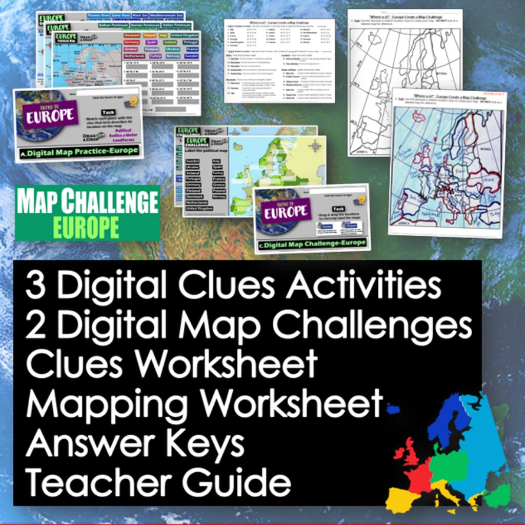 Map Challenge Europe - Fun European Geography Activities - Print & Digital