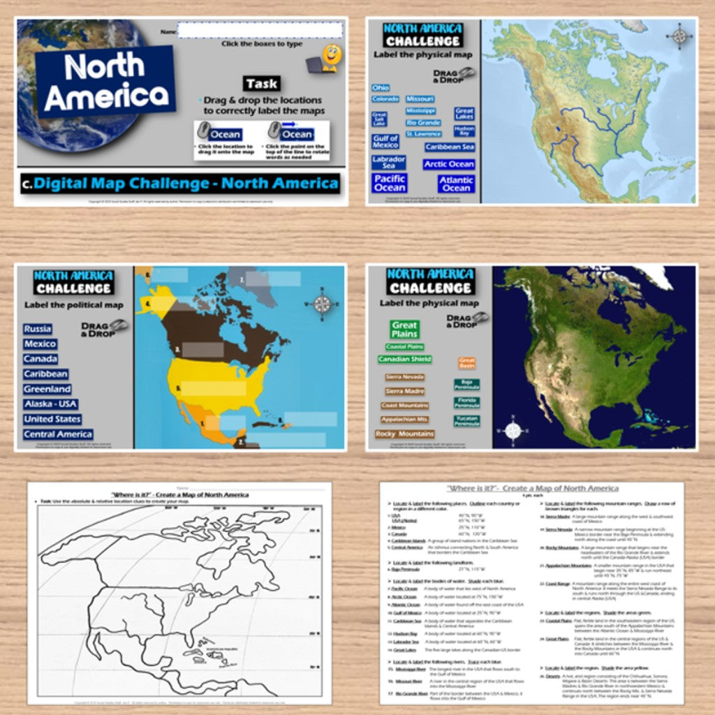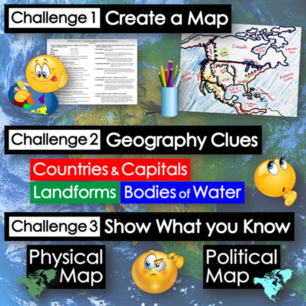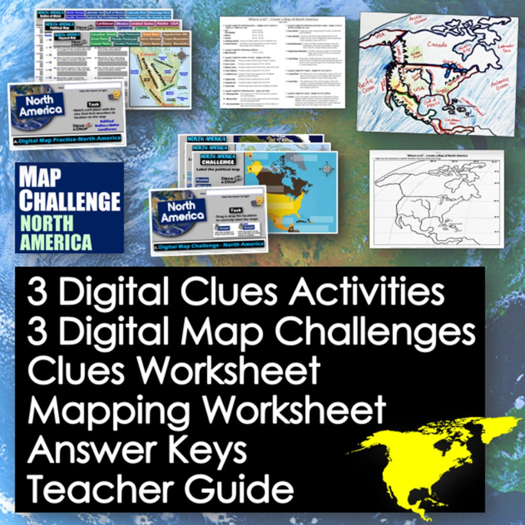 Challenge students to solve clues about North America’s geography to label and create maps of the continent. The easy-to-follow instructions make these geography activities a fun way to integrate mapping into your curriculum. Say goodbye to bored students simply copying from textbooks to label maps! Everything you need is included!