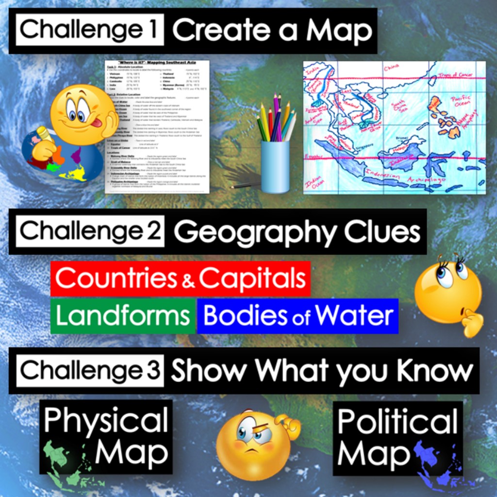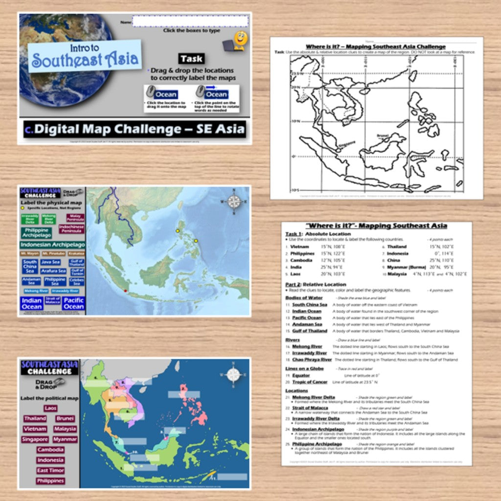 Map Challenge Southeast Asia - SE Asia Geography Activities - Print & Digital