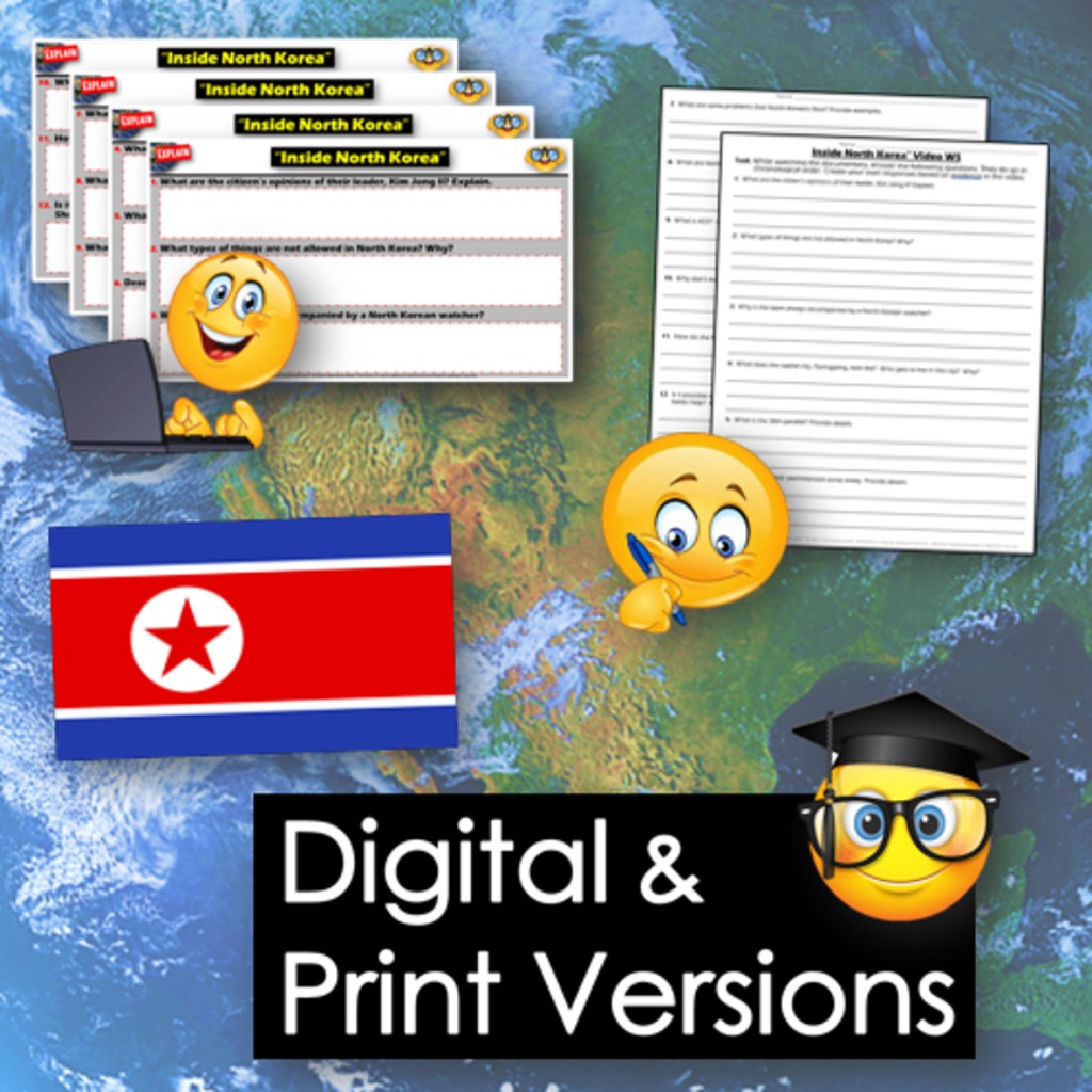 These video questions are designed to accompany the National Geographic documentary film, “Inside North Korea.” This video focuses on Kim Jong Un’s rise to power in North Korea. An undercover reporter enters the country and films the real-life conditions faced by North Koreans under the tyrannical regime. Students will respond to major questions addressed in the 50-minute video. My classes are always intrigued by the “Inside North Korea” documentary. The activity is engaging for students, and the guided format is easy for you to use! Everything you need is included!