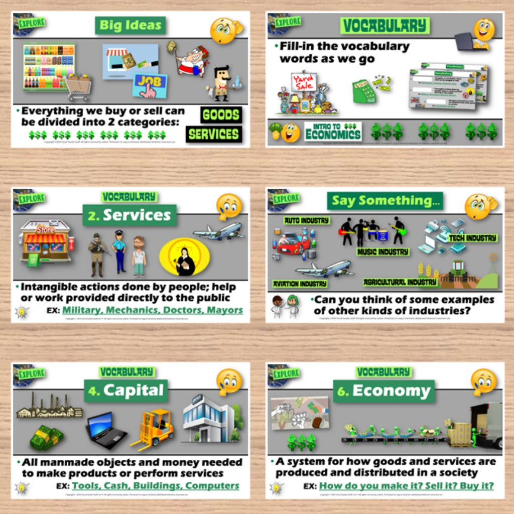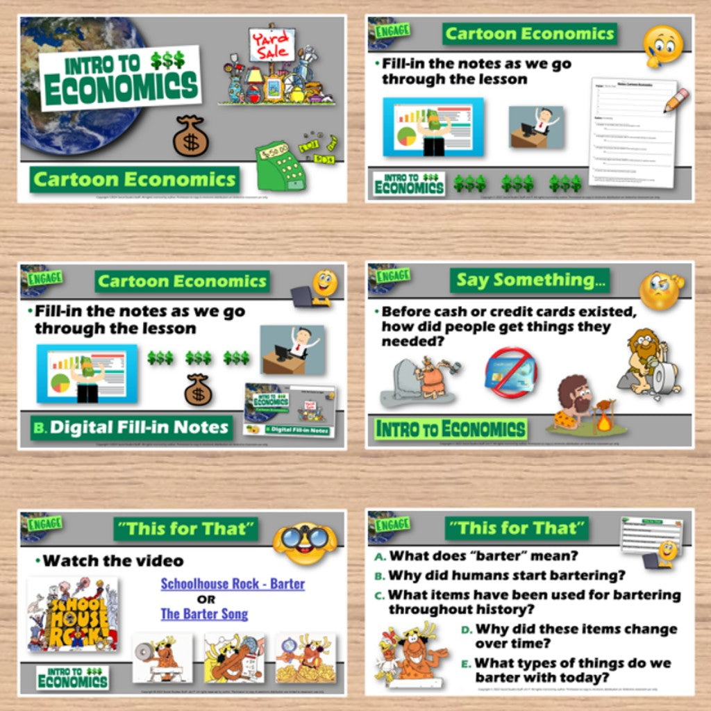 Begin with a “This for That” warm-up to explore trade throughout history, followed by an introduction to key vocabulary and concepts. Fill-in notes accompany the lesson. Next, conduct a case study using a cartoonto examine economic concepts. Students love watching a SpongeBob episode in class; you will love seeing them learn all about the economy! Finally, assess learning with a “Show What You Know” exit ticket activity.