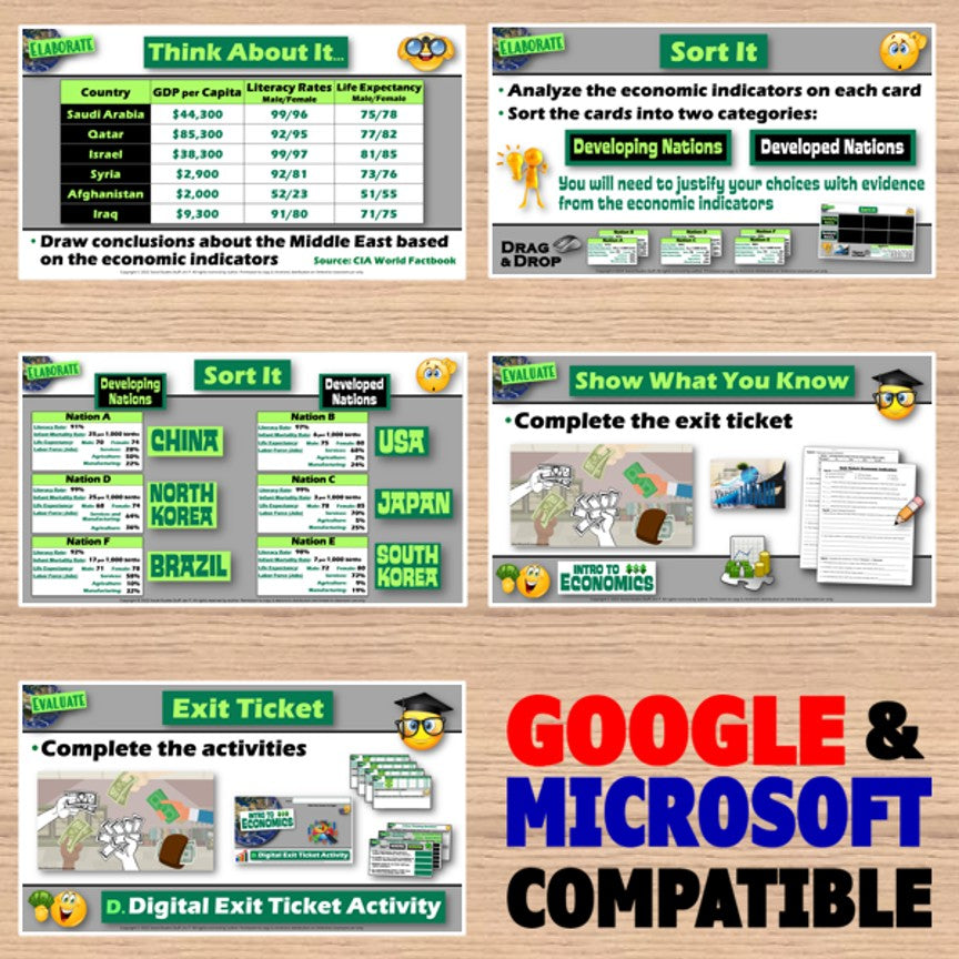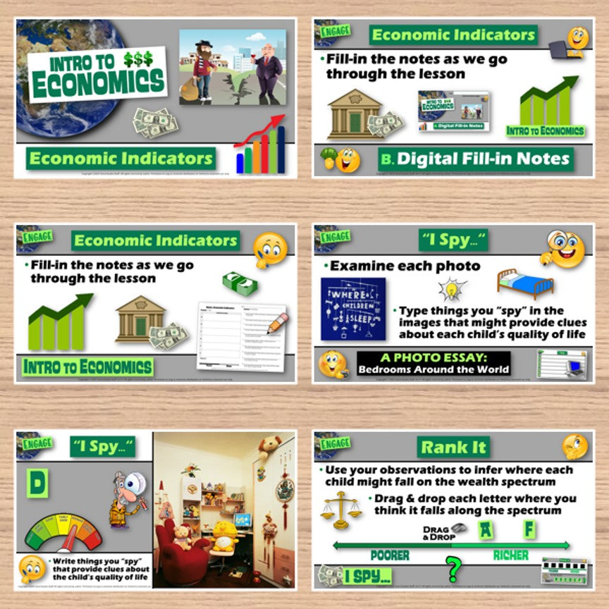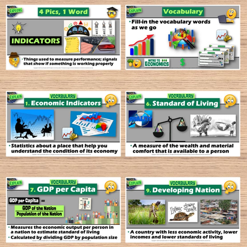 This lesson explains economic indicators and examines how they help us compare economies around the world. The activities are engaging for students, and the guided 5-E format is easy for you to use! Everything you need is included!