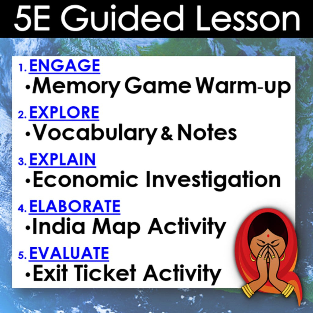 This thought-provoking lesson introduces the geography, economy, and cultures of India. The activities are engaging for students, and the guided 5-E format is easy for you to use! Everything you need is included!