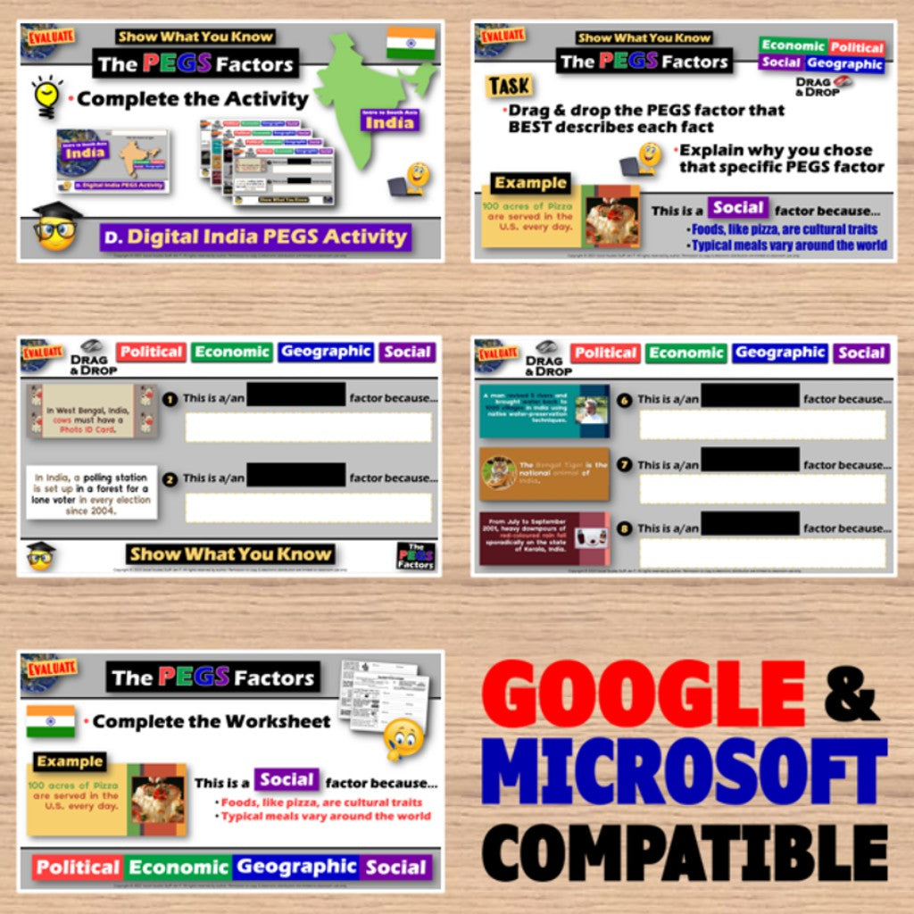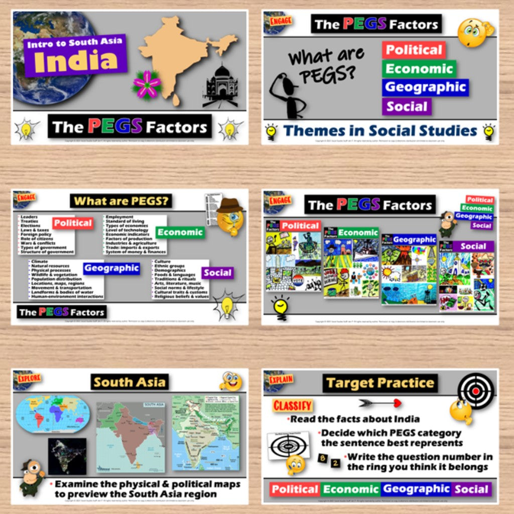 Explore India and South Asia: PEGS Factors Lesson and Activity - Print & Digital