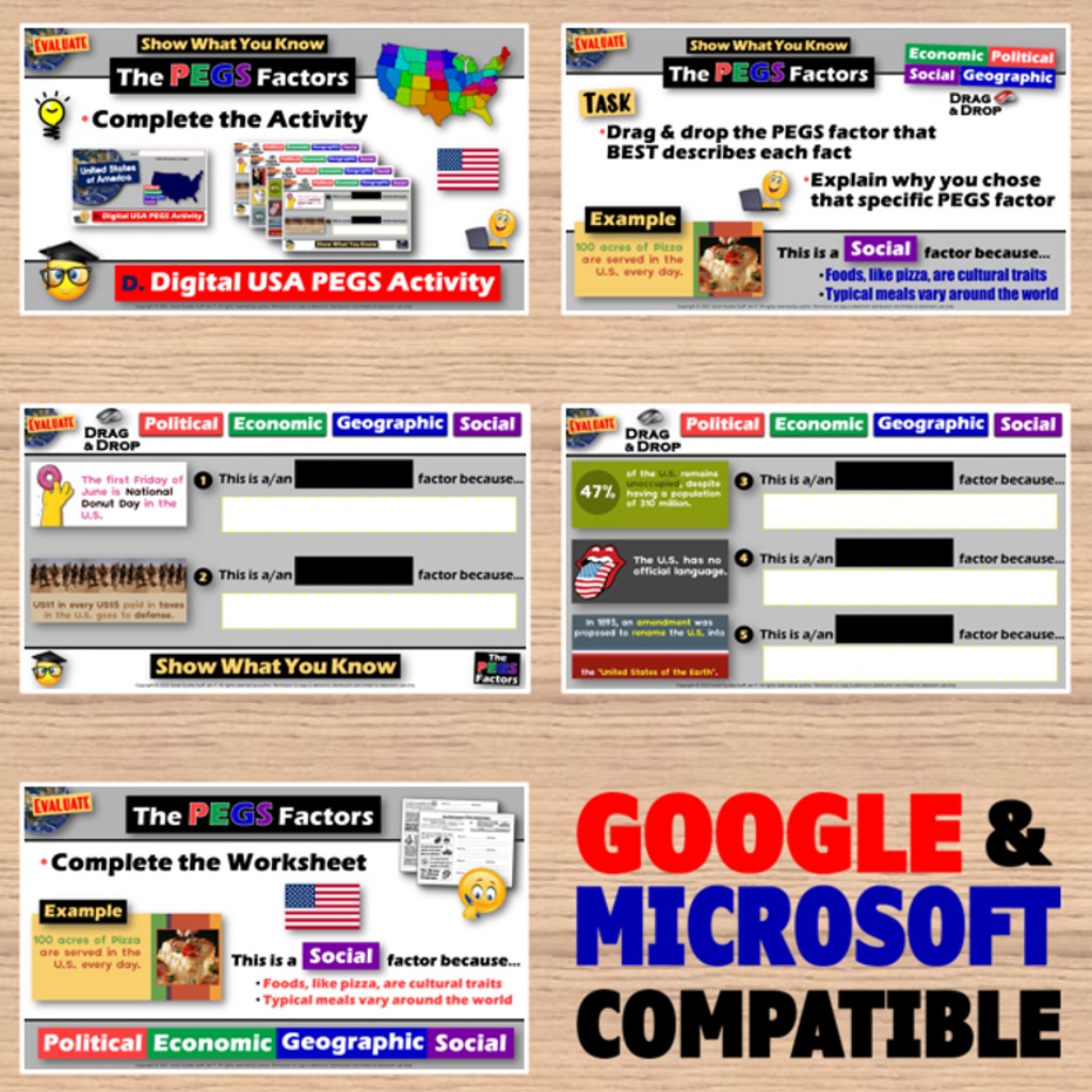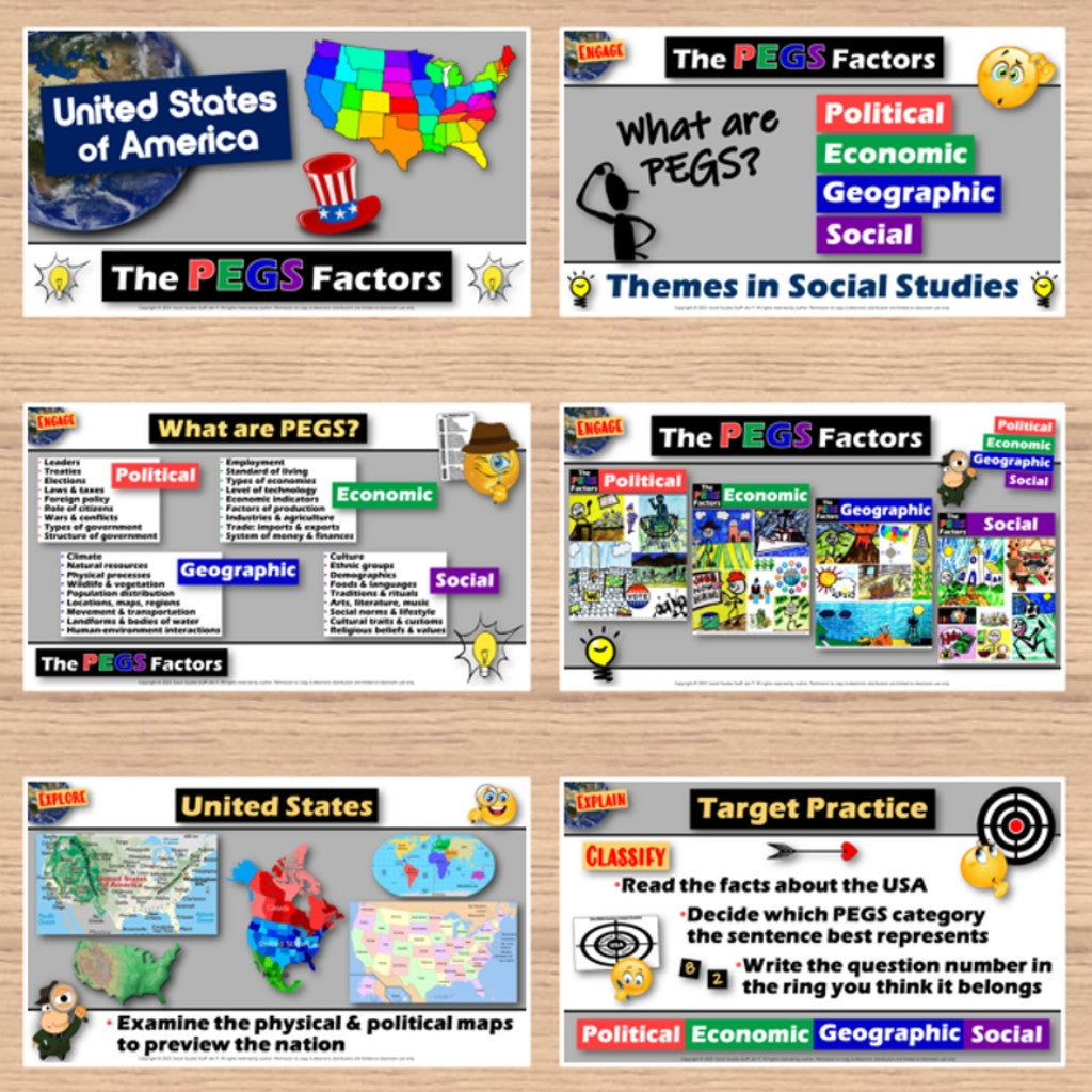 Explore the United States: PEGS Factors Lesson and Activities - Print & Digital