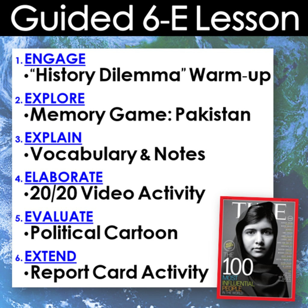 This lesson introduces the inspiring story of Malala Yousafzai, focusing on her survival and life under Taliban rule in Pakistan. It is a great accompaniment to the novel "I Am Malala.“ The activities are engaging for students, and the guided 6-E format is easy for you to use! Everything you need is included!