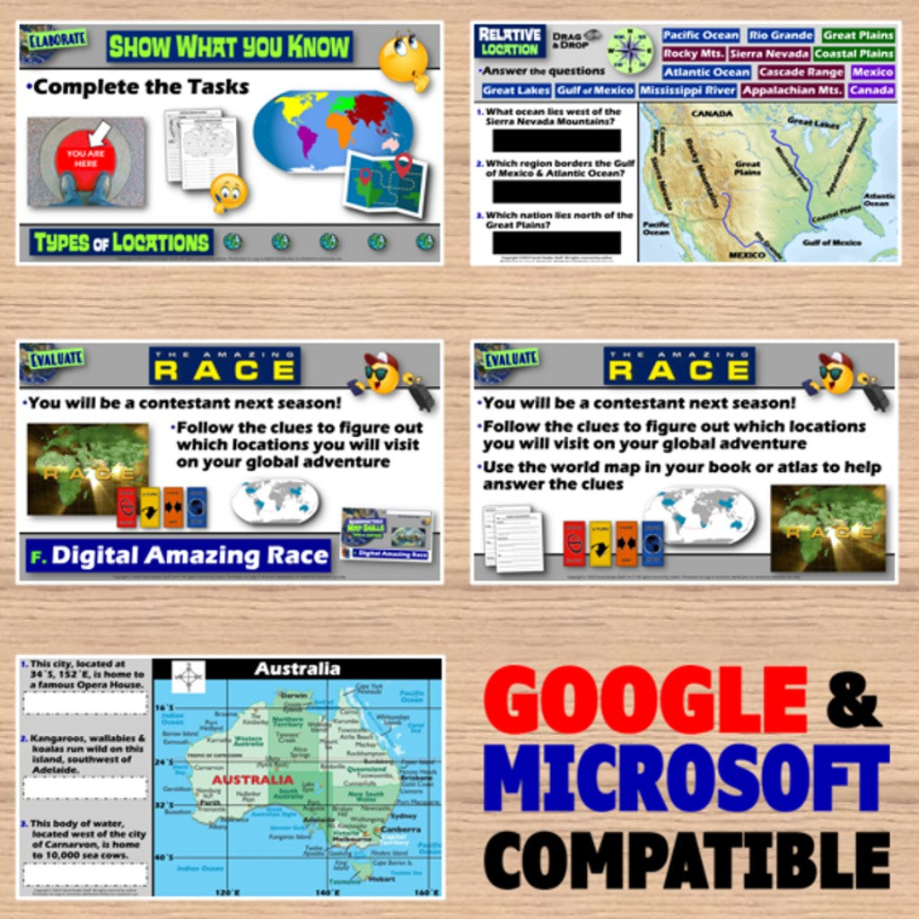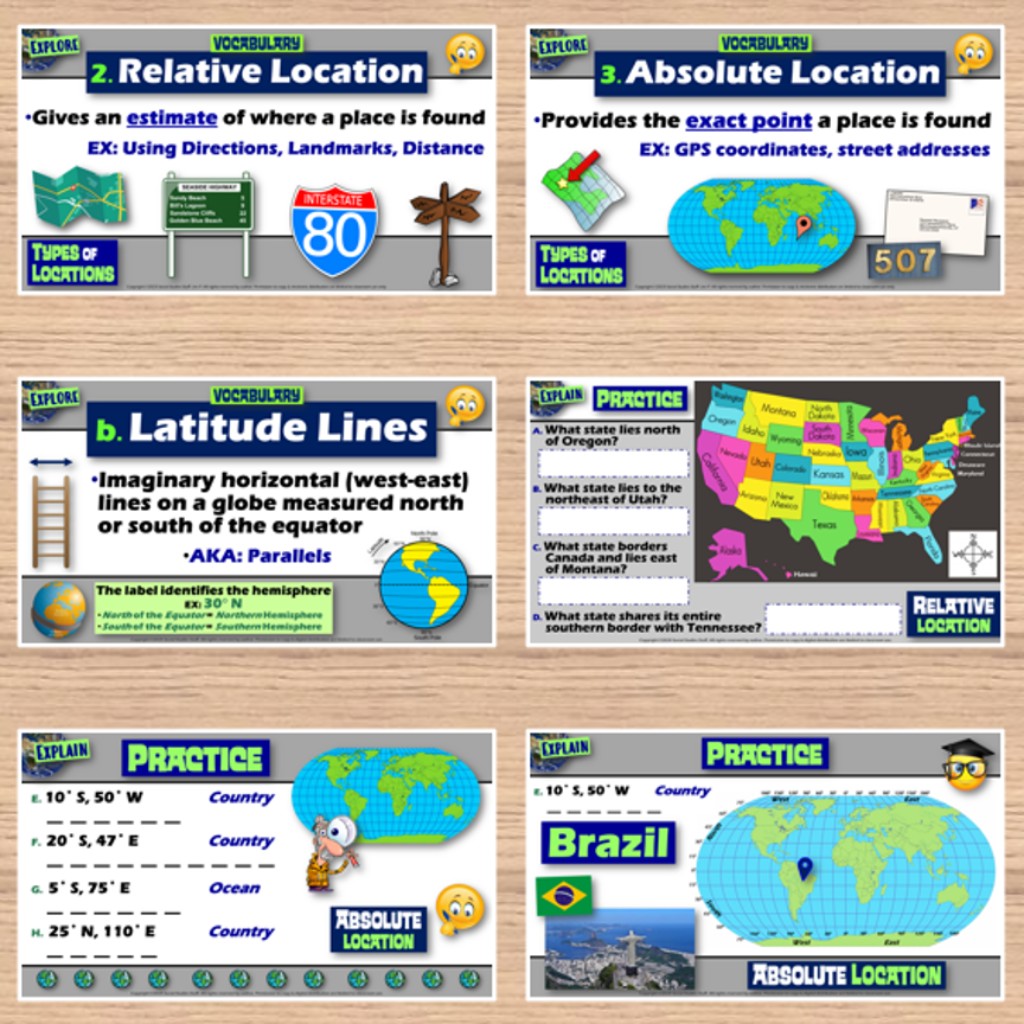 Using Absolute & Relative Locations Lesson and Map Activitites - Print & Digital