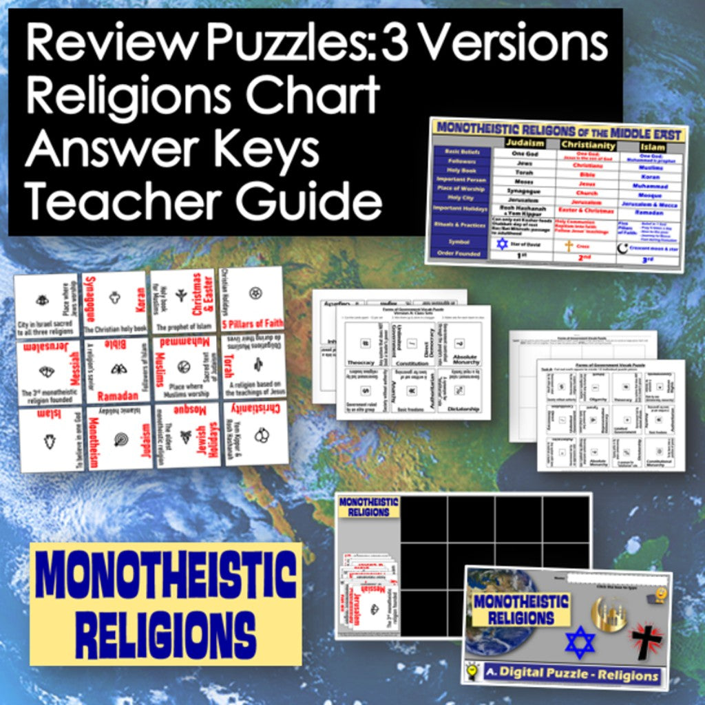 Monotheistic Religions Puzzles - Christianity, Judaism, Islam - Print & Digital