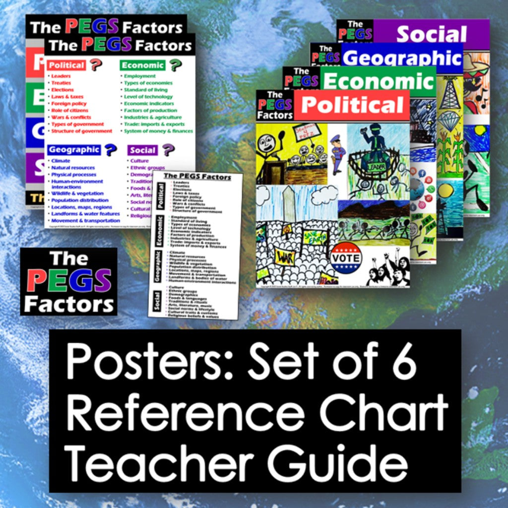The PEGS Factors Poster Set - Social Studies Word Wall Display - Print & Digital