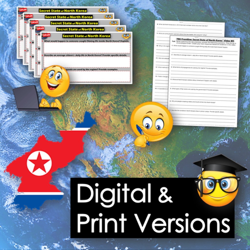 These video questions are designed to accompany the PBS Frontline report, “Secret State of North Korea.” This documentary focuses on Kim Jong Un’s rise to power and examines how technology is changing people's beliefs in North Korea. The video highlights the challenges faced by citizens and the shift away from blind obedience to the tyrannical regime. Students will respond to major questions addressed in the 55-minute video. The activity is engaging for students, and the guided format is easy for you to use! Everything you need is included!