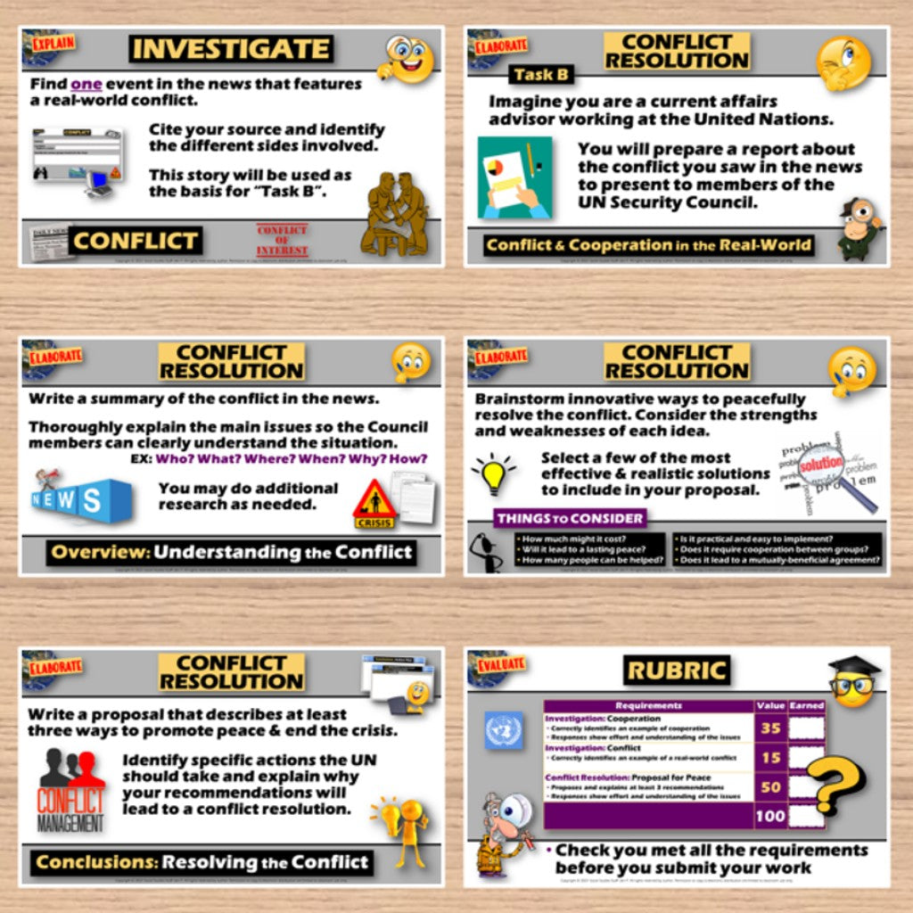 This thought-provoking current events activity develops your students’ conflict resolution skills. They imagine that the United Nations has asked them to investigate real-world conflicts and propose solutions to end the crisis. The activity is engaging for students, and the guided format is easy for you to use! Everything you need is included!