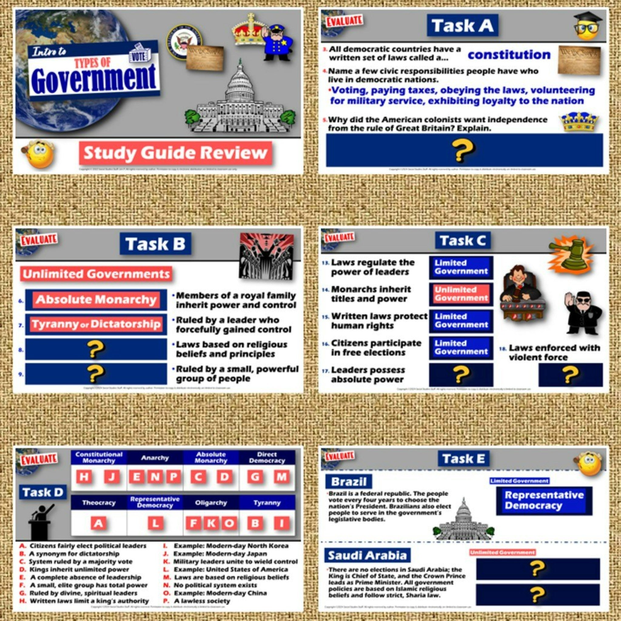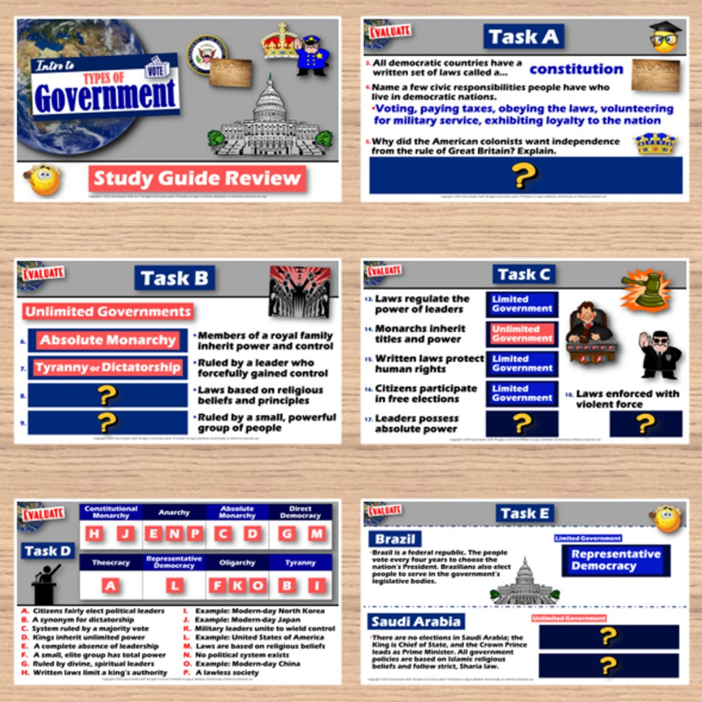 Assess: Intro to Governments Study Guide, Review Game and Test - Print & Digital