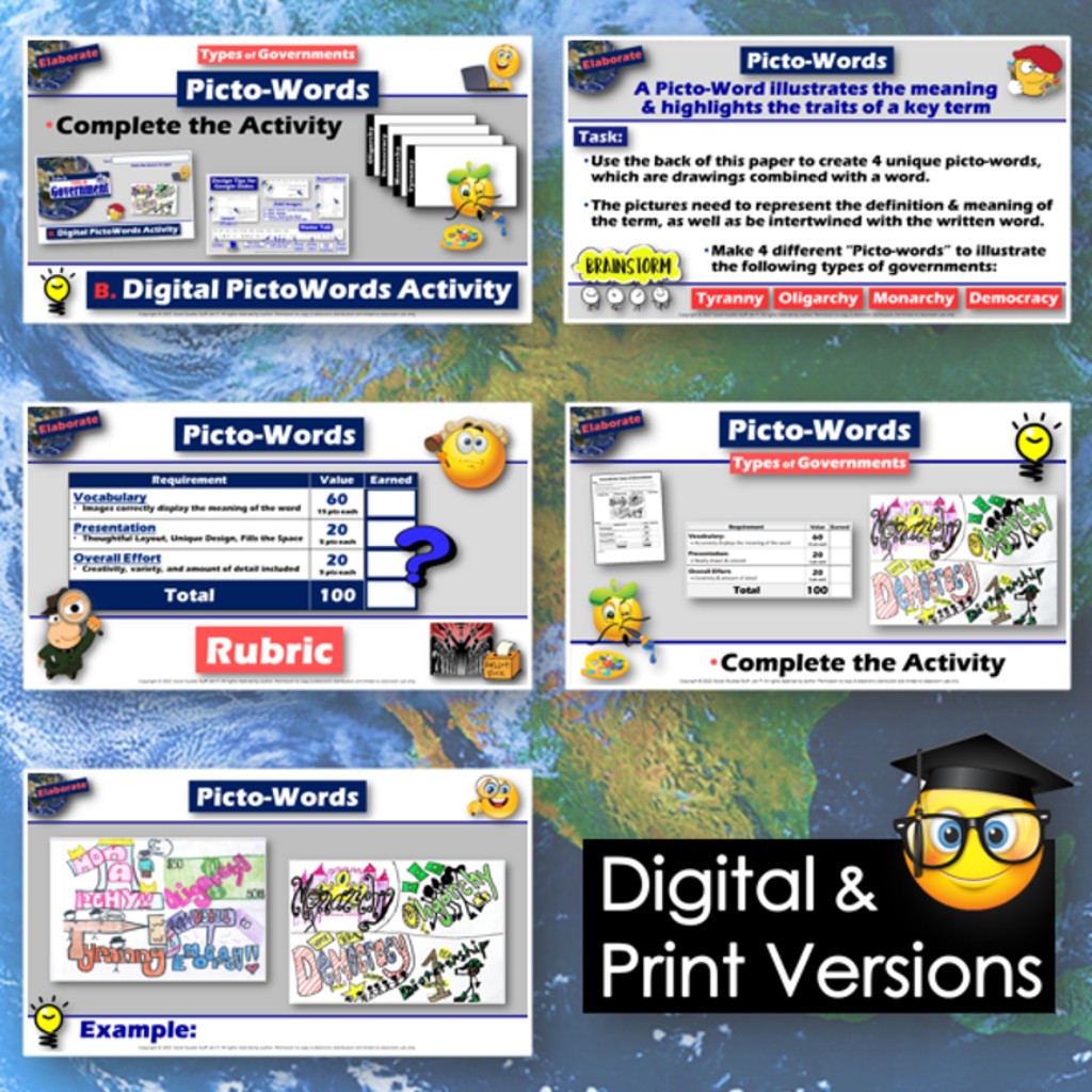 Create Types of Government PictoWords - FUN Vocabulary Review - Print & Digital