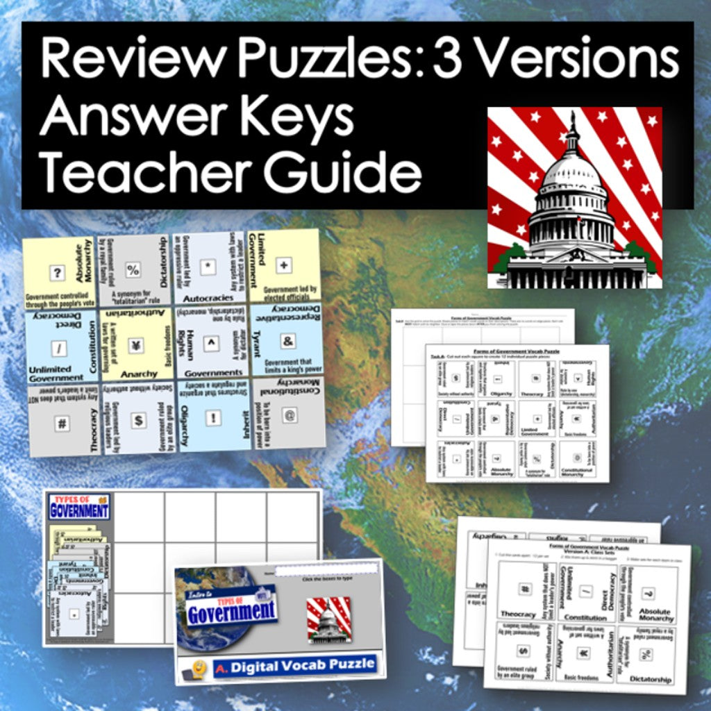 Intro to Governments Review Puzzles - FUN Vocabulary Activity - Print & Digital