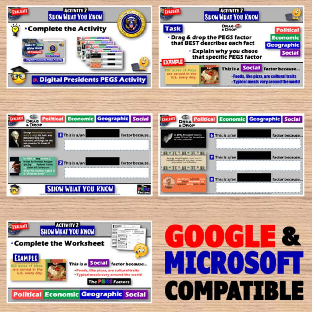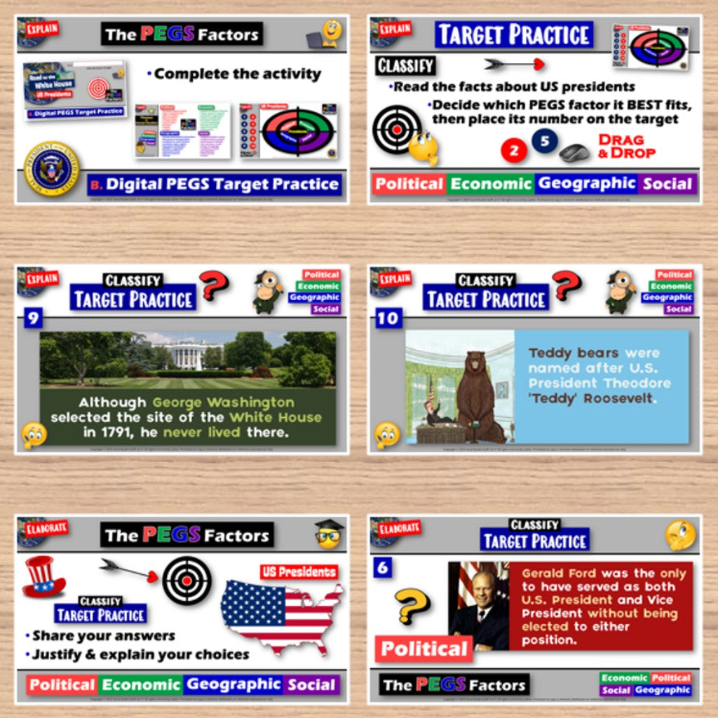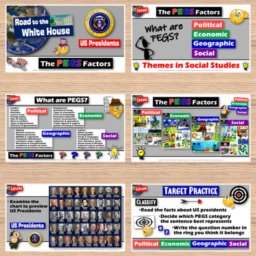 US Presidents: The PEGS Factors Guided Lesson and Activities - Print & Digital