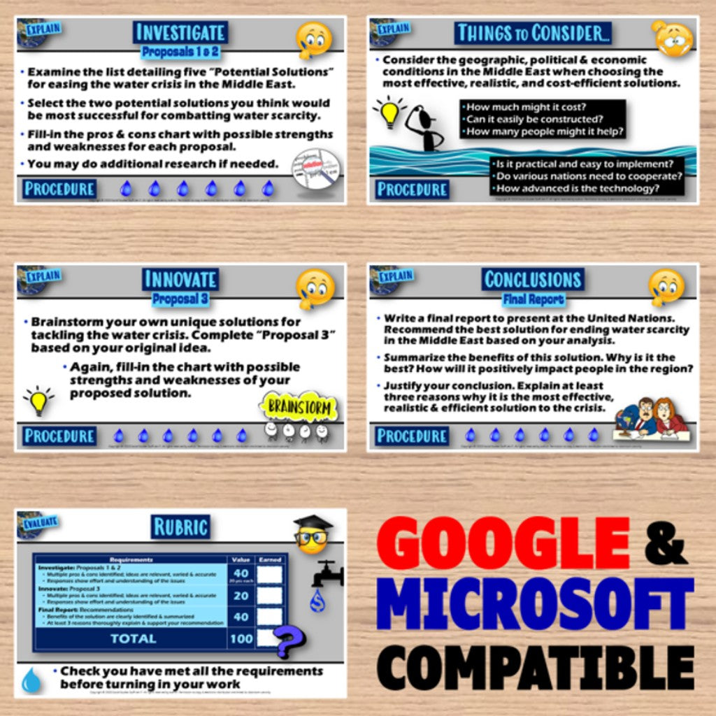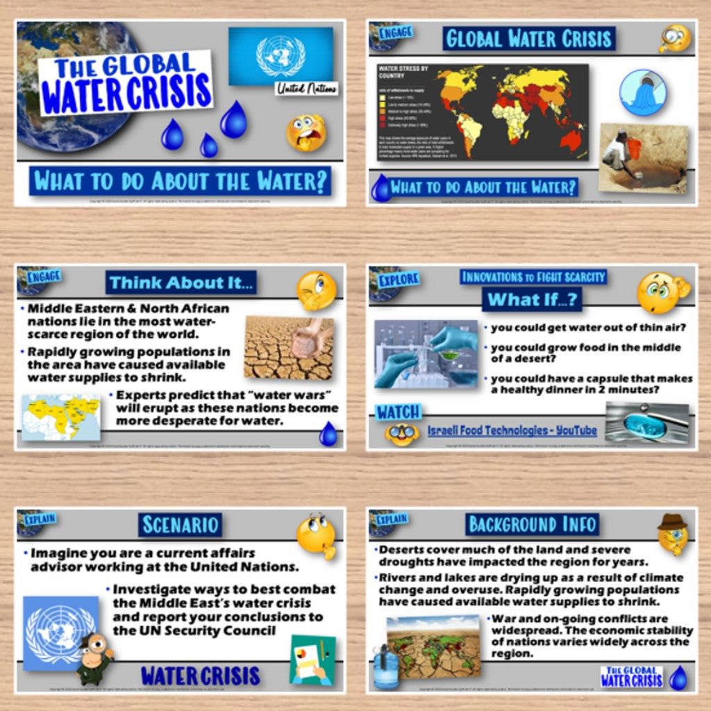 This thought-provoking activity challenges students to examine innovative solutions to solve the water scarcity crisis. Throughout the project-based learning (PBL) activity, students will develop critical thinking and problem-solving skills as they explore creative solutions to combat this pressing issue. The activity is engaging for students, and the guided format is easy for you to use! Everything you need is included!