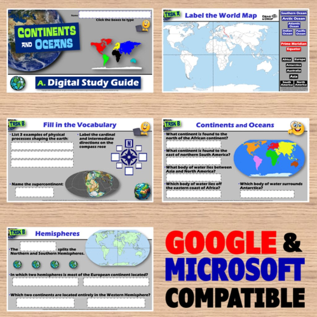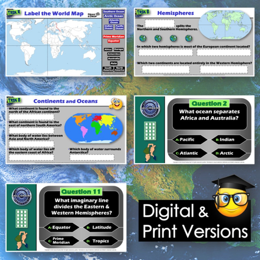The World Map Study Guide, Game and Test - Assess Map Skills - Print & Digital