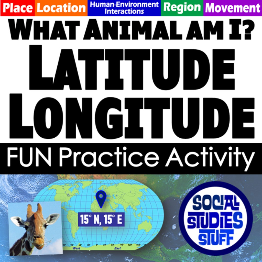 FUN Latitude & Longitude Practice Activity - What animal am I? - Print & Digital