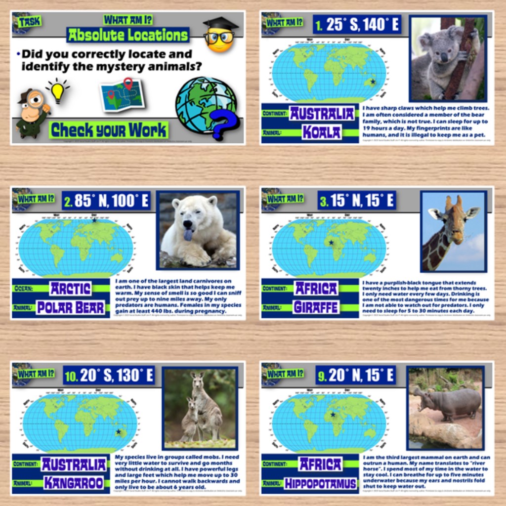 Challenge your class to plot latitude and longitude coordinates to locate mystery animals on a world map. Then, students read clues and attempt to guess which animal lives at each location. A fun way to integrate science & social studies into your curriculum while students are highly-engaged.