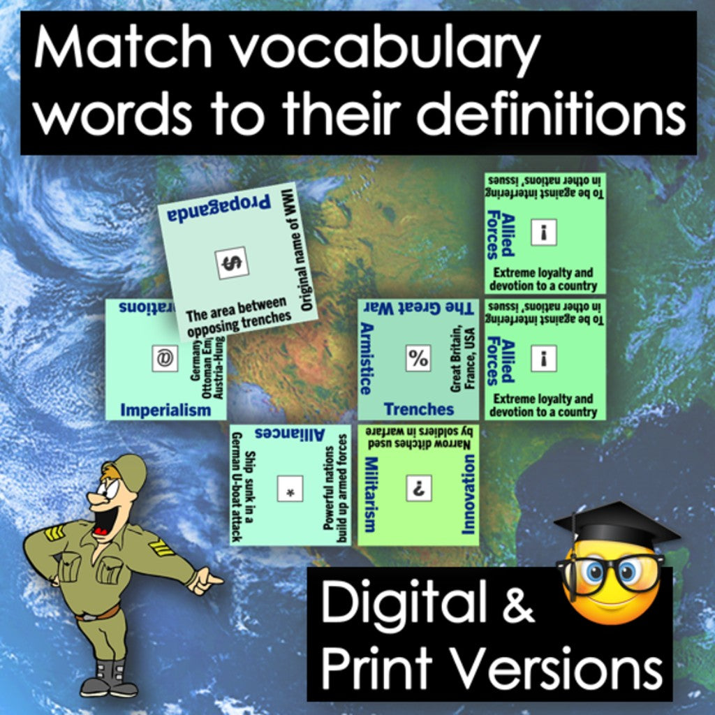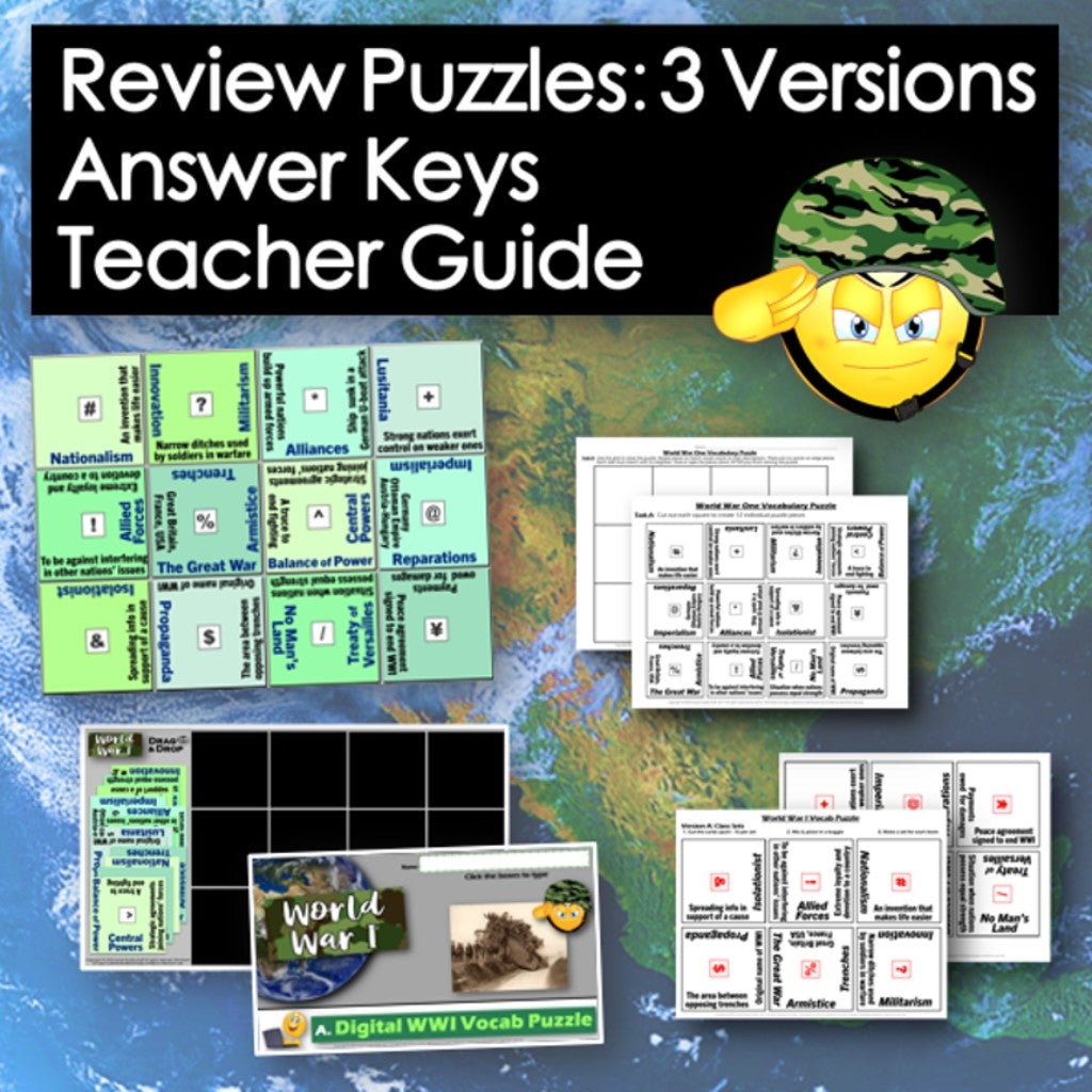FUN WWI Vocabulary Puzzles - World War 1 Review Activities - Print & Digital