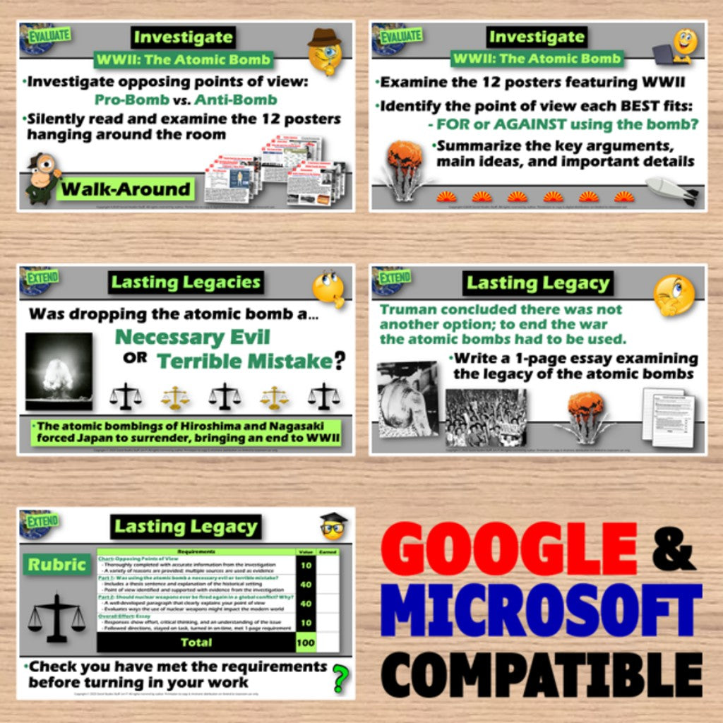 The End of WWII Lesson and Dropping the Atomic Bombs Activity - Print & Digital